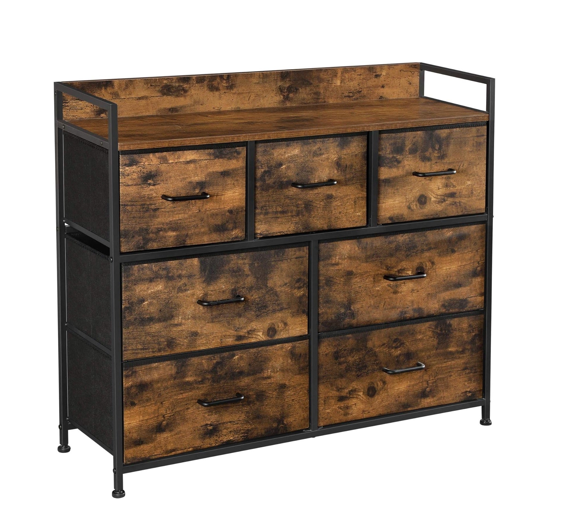 Commode kast 7 stoffen laden met handgrepen metalen frame industrieel design Bruin