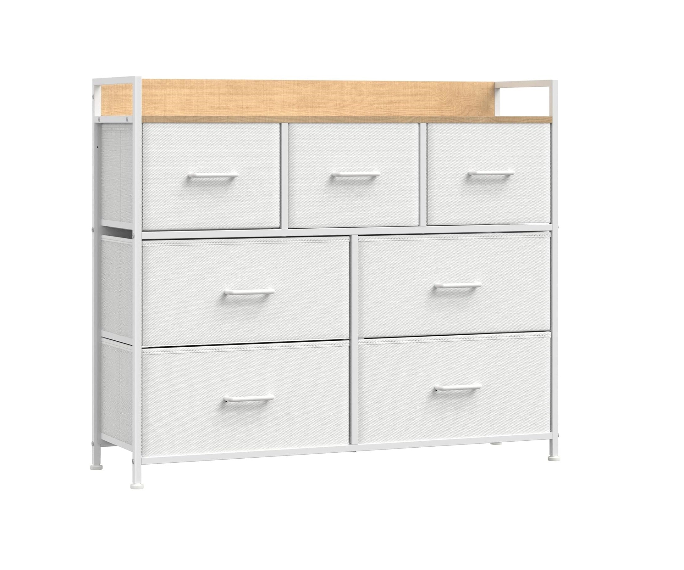 Commode kast 7 stoffen laden met handgrepen metalen frame industrieel design wit-eiken