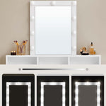 Make-up table, dressing table white with LED lighting and mirror.